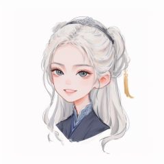 (masterpiece, best quality:1.2), ultra-detailed,(ultra detailed),white_background,1girl,  White hair,portrait,smile,Qbangufeng,<lora:qbangufeng:0.8>