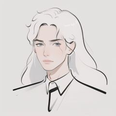Minimalism, minimalist line drawing,portrait,white_background,masterpiece, best quality:1.2,1male,((handsome man:1.5)),messy white hair,portrait,cold attitude,best light and shadow, day, depth of field, <lora:JIANYUE:1>