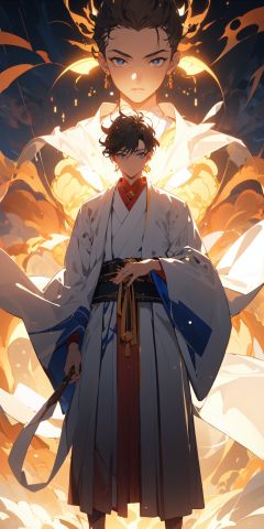, (masterpiece:1.2), best quality,PIXIV,  1 boys,solo, black hair, short hair, glowing, japanese clothes, hand up, long sleeves, chinese cloth, standing,standing in front of blue glowing buddha <lora:taoist_20230623200708-000018:0.8>