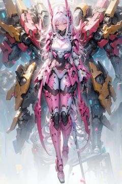 Pink Mecha,Honey Mecha,Mecha all,,full body,Full body mecha,panorama, sideways, negative space, Realistic photography, 8k resolution, real photos, A mech girl with long hair, (full body:1.1), mysterious, photon mapping, radiosity, physically-based rendering, delicate realism, night, (Ruins:1.1), (pink style:1.2), Face covered by mecha,Female figure,Sleeves long mechanical legs, <lora:EMS-604-EMS:0.5>, <lora:EMS-606-EMS:0.7>