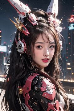 a girl,masterpiece,best quality,,Pink Mecha,Honey Mecha,cyberpunk,Night, starry sky background