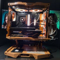 Best quality,masterpiece,ultra high res,(photorealistic:1.4),raw photo, host chassis,orange style,side view,<lora:海景机箱:0.8>
