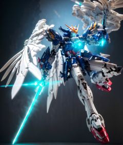 ((best quality)), ((masterpiece)), (detailed),highres,close up,mecha,side view,wings,(glowing eyes),glowing sword, <lora:飞翼零式:0.8>