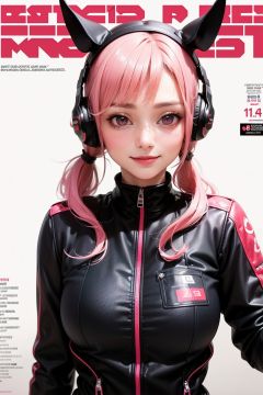 (masterpiece:1.4, best quality:1.4), illustrations, (solo:1.2), (original), (very detailed wallpaper), photographic reality, (ultra detailed:1.4), (super complex details), ((Magazine cover-style:1.4)1girl, animal ears, bangs, blush, bodysuit, breasts, closed mouth, fake animal ears, gloves, headphones, headset, horse ears, impossible clothes, jacket, large breasts, long hair, long sleeves, looking at viewer, pink bodysuit, pink eyes, simple background, skin tight, smile, solo, twintails, upper body, very long hair, white background, white gloves, white hair,alice \(nikke\),(masterpiece:1.4),(best quality:1.4),(shiny skin),realistic <lora:(妮姬)aliceNikke_v30:1>