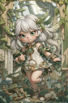 detailed illustration, kusanali,kid, white hair,white dress, green eyes,hair ornament, blush, full body, scenery, jungle ,32,高清,White Pantyhose,machinery,, Mecha,, , , , , ,cartoon ,real, <lora:EMS-2799-EMS:0.8>, <lora:EMS-2798-EMS:0.6>, <lora:EMS-2806-EMS:0.8>