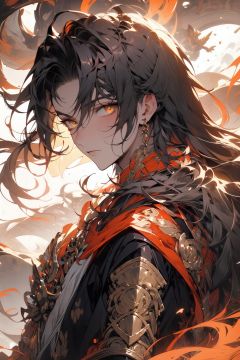 , (masterpiece:1.2), best quality,PIXIV,midjourney portrait,1boy, long hair, male focus, solo, clenched hands, wind, yellow eyes, multicolored hair, very long hair, shoulder armor, closed mouth, brown hair, looking at viewer, standing, floating hair <lora:midjourney portrait_20230625143136:0.9>