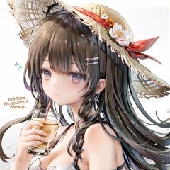 masterpiece, ((best quality)), (ultra-detailed), 1girl, solo, starfish, seashell flower, hat, hair ornament, jewelry, straw hat, looking at viewer, sunglasses, hat flower, drinking straw, hairclip, earrings, red flower, tinted eyewear, yellow flower, bangs, english text, multicolored hair, orange flower, black hair, ring, cup, long hair, orange-tinted eyewear, food, brown hair, portrait, shell hair ornament ,breasts