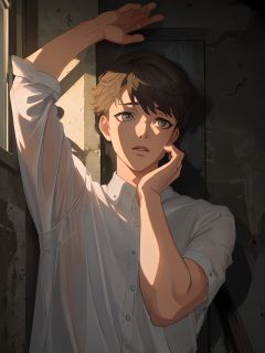 shenyong1male,hands apart up,alley,⚡,rain,surrender,flashlight,upper body,nightfall,panic, white shirt,masterpiece, best quality, <lora:shenyong:1>,(((masterpiece))), (((best quality))), ((ultra-detailed)), (illustration), (detailed light),((an extremely delicate and beautiful)),dramatic_shadow,ray_tracing