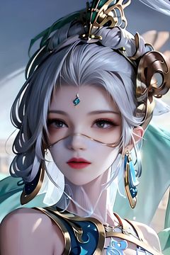 taihua, 1girl, solo, portrait, veil, looking at viewer, earrings, jewelry, akali, closed mouth, long hair, ponytail, hair ornament, mountain background,ultra realistic,4K,, masterpiece, best quality,(Wearing veil on her face:1.2),((The veil covers the mouth and nose)),proportionate,8K,detailed,((white hair))