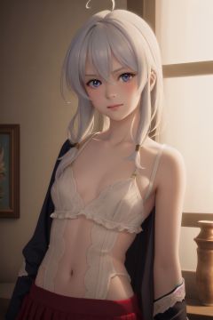 solo, 1girl, off-white hair, ahoge, detailed off-white locks, (elaina \(majo no tabitabi\):1.17), blue eyes, blank stare, sparkling big eyes, bangs, hair between eyes, thin lips, glossy lips, delicate_facial_features, beautiful face, expressive gaze expressions, lovestruck, resolute eyes, light blush, seductive smile, raised eyebrow, mysterious expression, ((oily shiny skin, subtle_rosy_flush_skin)), nape, neck, collarbone, ([:✋:0.5]), medium_breasts, slim waist, slim hips, petite figure, perfectly harmonious figure, perfect physique, perfect anatomy,