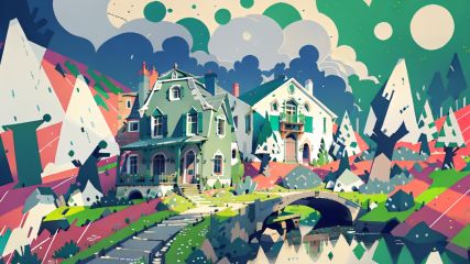 artichoke green (Spring:1.3),Mountains, sunshine. forest,river,house,flower,Amazing,atmosphere,epic,3d,8k,depth of field,masterpiece, best quality,