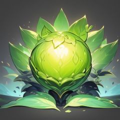 plants niji style,game icon for a martial soul cultivation game featuring a mystical herb called "Dreamfruit." This peculiar fruit grows in the depths of a mysterious forest and comes in a variety of different shapes and sizes. The design should have a flat style, with a black background, highlighting the diversity of the fruits <lora:game_武魂仙草_v0.1:1>