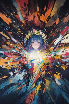 (abstract art:1.5), (masterpiece, best quality, ultra high res:1.2), 1girl, flower crown