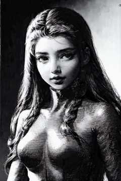 penink,masterpiece, best quality,1girl ,standing, long hair,cold face, upper body,portrait, (front),monochrome, greyscale,