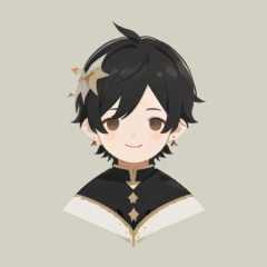 flat avatar, 1boy, solo, smile, hair ornament, head shot, simple background, black  hair, earrings,