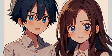 portrait, 1girl, 1boy, long hair, blue eyes, short hair, shirt, collared shirt