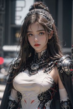 A sensual and beautiful woman in a Japanese mecha-inspired fashion,