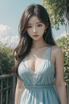 {{masterpiece}},{{{best quality}}},{{ultra-detailed}},{{illustration}},{{disheveled hair}},depth of field (dof),Chest Shot(MCU),Mid shot,Split Lighting,1 girl,(soft blending:1.2),fluid colors,dreamy washes,fantasy,dream world:1.8,Fantasy Style,<lora:KCW_V6:0.65>,<lora:RX_style_DEMO:1>,blue sky,baiyun,
