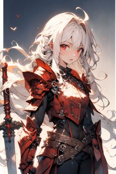 [(white background:1.5)::5],(masterpiece:1.2), best quality,game cg,1girl, weapon, solo, sword, long hair, red eyes, gauntlets, looking at viewer,armor, <lora:fantasy_20230707233406-000014:1>