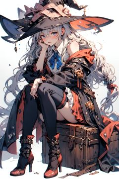 [(white background:1.5)::5], (imid shot:0.95), (full body:1.25),(masterpiece:1.2), best quality,game cg,Elaina,witch hat, <lora:fantasy_20230707233406-000012:0.9>