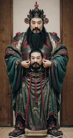 <lora:Doorgods:0.65>, chinese door gods, 1girl, beard, looking at viewer, Perfect body, natural skin texture, Best quality, masterpiece, pose, mustache