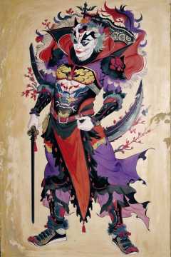 <lora:Doorgods:0.65>, chinese door gods, a painting of joker with a sword and armor, full body, 1boy, male focus, solo, drawing
