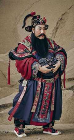 <lora:Doorgods:0.65>, chinese door gods, 1girl, beard, looking at viewer, Perfect body, natural skin texture, Best quality, masterpiece, pose, mustache