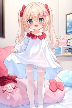 masterpiece,high quality,1girl,(solo:1.2),open mouth,happy,standing,looking at viewer,long hair,(loli:1.2),(child:1.2),(white pantyhose:1.2),pajamas,bedroom,, <lora:EMS-5265-EMS:1>