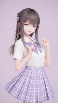 masterpiece,best quality,1girl, blue_eyes, cowboy shot, long_hair, looking_at_viewer, plaid_skirt, pleated_skirt, school_uniform, shirt, short_sleeves, skirt, smile, solo, <lora:lumi:0.8>