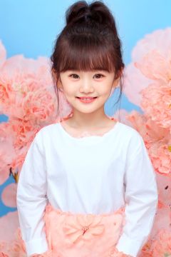 ID photo, (A 3-year-old baby: 1.5 years), alone, upper body, ponytail,(big watery eyes: 2.0) , (chubby face: 1.5), white shirt, peach blossom color, tender skin, she smiles at the camera,(pink solid background: 1.5) , cute.blue_IDphoto