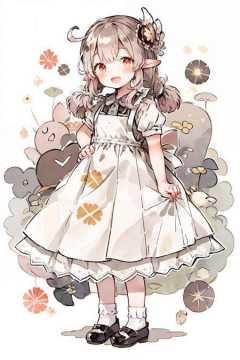 masterpiece, best quality, <lora:klee:1>, <lora:0622_watercolor_loha_da16_dim64-000010:0.7>,1girl, sidelocks, pointy ears, maid, klee (genshin impact), maid headdress, twintails, apron, solo, bangs, ahoge, alternate costume, looking at viewer, smile, simple background, :d, maid apron, hands on hips, low twintails, light brown hair, full body, short sleeves, long hair, clover print, orange eyes, mary janes, enmaided, hair between eyes, socks, open mouth, shoes, black footwear, standing, white background, red eyes, dress, black dress, white socks, head tilt, puffy sleeves, dodoco (genshin impact), puffy short sleeves, jumpy dumpty