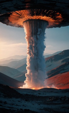otherworldly-scene, titanic-geysers, hair-raising-atmosphere, alien-weather-systems, 9:16-vertical-frame, hypnotic-landscapes, ultra-realistic-surfaces, contrasting-lights, trending-artstation, honored-creation, Panasonic-Lumix-S1R, 8k-resolution, peaceful, no-humans, extraterrestrial-geysers, towering-plumes, metallic-terrain, shimmering-colors, iridescent-clouds