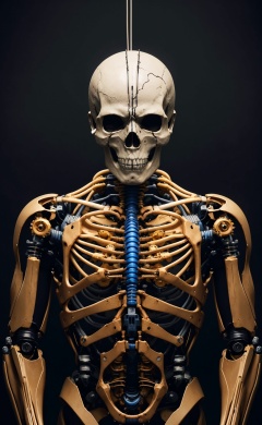official art, unity 8k wallpaper, ultra detailed, beautiful and aesthetic, masterpiece, best quality, realistic, (zentangle, mandala, tangle, entangle), extremely detailed (dynamic angle),cinematic light,((1mechanical boy)),solo,full body,(machine made joints:1.2),((machanical limbs)),(blood vessels connected to tubes),(mechanical vertebra attaching to back),((mechanical cervial attaching to neck)), a half body portrait of an elite soldier in the style of call of duty ghost operator, ((black and gold skull mask)), hands folded in front, menacing gaze,(wires and cables attaching to neck:1.2),(wires and cables on head:1.2)(character focus),science fiction,extreme detailed,colorful,highest detailed
