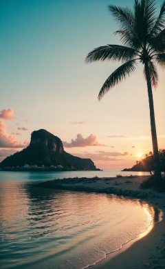 tropical_paradise, crystal_clear_water, vibrant_colors, 3D_rendering, Blender, artstation_highlight, competition_winner, Canon_EOS_R5, 8k, Sony_A7R_IV, breathtaking_art, no_crowds, palm_trees, sunset, beach, teal_orange, cinematic, warm_tones, high_contrast, golden_hour