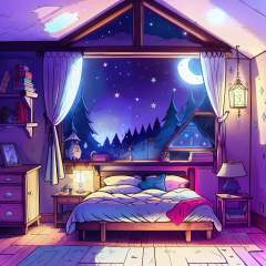a cozy bedroom at night, moonlight shining through the window, detailed illustration, cartoon, in the style of gravityfalls, <lora:gravityfalls:0.5>