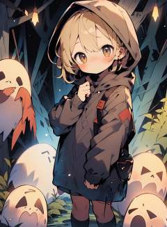 1girl, hood, blush, brown hair, brown eyes, hood up, no pupils, chibi, ghost, long sleeves, cloak, short hair,<lora:Nijicute_20230623024115:1>