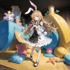masterpiece, best quality,1girl, (solo:1.3),standing,full body, ChioriMikami,long hair,blue eyes,blonde hair,rabbit ears,flat chest,official art, simple background, close-up,