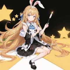 masterpiece, best quality,1girl, (solo:1.3),standing,full body, ChioriMikami,long hair,blue eyes,blonde hair,red rabbit ears,flat chest,official art, simple background, close-up,