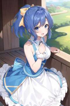 masterpiece, best quality, 1girl,(solo:1.3),standing,NanamiReina,short hair,blue hair,ponytail,blue eyes,