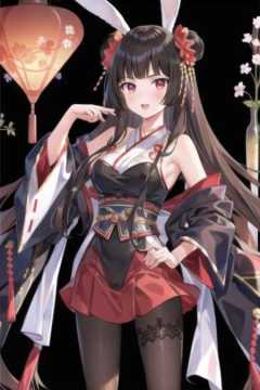 masterpiece, best quality,1girl, (solo:1.3),standing,KaguyaHime,long hair,black hair,red eyes,rabbit ears,