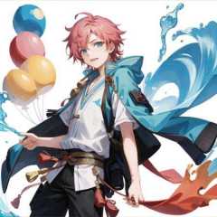 masterpiece, best quality, 1boy,(solo:1.3),standing,official art, simple background, close-up,looking at viewer, Qixi,1boy,pink hair,short hair,aqua eyes,