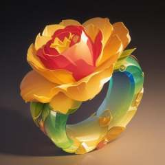 A rainbow-colored ring made of gemstones, floral motifs, exquisite beauty, (fantasy), (masterpiece, top quality, best quality, official art, beautiful and aesthetic:1.2), (8k, best quality, masterpiece:1.2), high definition, game icons, official artwork, (2D), black background. <lora:戒指:0.5> <lora:aki:1>