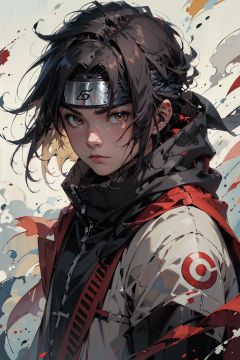 BJ_Oil_painting,Sasuke,solo,looking at viewer,short hair,black hair,1boy,brown eyes,closed mouth,upper body,male focus,headband,ninja,forehead protector,konohagakure symbol,cinematic lighting,strong contrast,high level of detail,Best quality,masterpiece,White background,<lora:Oil_painting-000018:0.6>,