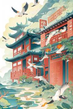 guofeng,building,(bird:0.8),chinese style,illustration,masterpiece,best quality,illustration,no humans,<lora:chinese style illustration_0.5+chinese style illustration v2_0.5:0.8>,