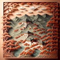 masterpiece, best quality,RAW photo, *subject*, (high detailed skin:1.2), 8k uhd, dslr, soft lighting, high quality, film grain, Fujifilm XT3,regal, high detail, fractal, 3d depth, 3D graphics with simplistic polygon shapes, intricate designs, delicate patterns, shadowbox frame, silhouette, kirigami, scherenschnitte,jianzhi,tree,(cloud:0.8),simple background,mountain,east asian architecture,The Great Wall,grass,depth of field,sky,circle focus,circle background,Pine tree,<lora:Jz:0.60>
