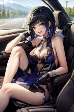 masterpiece, best quality, <lora:yelan:1>,1girl, yelan (genshin impact), breasts, gloves, steering wheel, solo, dice, single elbow glove, bangs, car interior, diagonal bangs, jewelry, smile, car, motor vehicle, ground vehicle, asymmetrical gloves, cleavage, looking at viewer, open mouth, sitting, bob cut, bracelet, black hair, short hair, blue hair, green eyes, mismatched gloves, blurry, elbow gloves, multicolored hair, large breasts, bare shoulders, mole, fur trim, white gloves, driving, black gloves, mole on breast, sleeveless, :d, blurry background, single glove, dress, fingerless gloves, tassel, blue dress, earrings, blue eyes