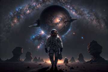 an astronaut is walking in space,the background is the vast universe,the milky way,galaxy