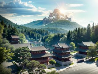 Aerial view, a lot of Chinese architecture houses and a mountain in the background with clouds in the sky, vray,niaokan, (extremely detailed CG unity 8k wallpaper), (masterpiece), (best quality), (ultra-detailed), (best illustration), (best shadow),