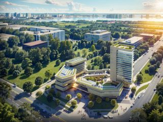 Aerial view,Office Building,, (extremely detailed CG unity 8k wallpaper), (masterpiece), (best quality), (ultra-detailed), (best illustration), (best shadow),