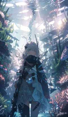 1girl, solo, fish, underwater,looking at viewer, bubble, bangs, coral, , sunlight, air bubble, ribbon <lora:waterlight-000007:1> AR15,BR15,CR15  <lora:GF-少前-AR15-MOD3-og:1>